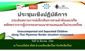 โครงการคุ้มครองสิทธิเด็กไร้รัฐไร้สัญชาติ SCPPIII ได้จัดประชุมเชิงปฏิบัติการ “ประเมินสถานการณ์เด็กเดินทางตามลำพังและ/หรือพลัดพรากจากผู้ปกครอง ตามแนวชายแดนและในประเทศไทย”